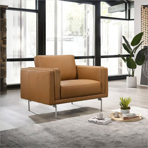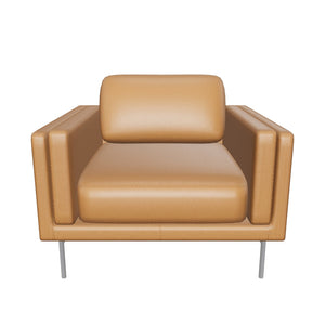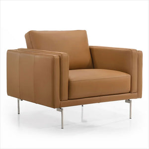 The Draper chair is not only elegant but also very comfortable. It offers superior seating comfort from the soft top grain Italian leather cushions supported by metal legs in brushed stainless steel. A great companion to the matching Draper sofa or a standout on its own.