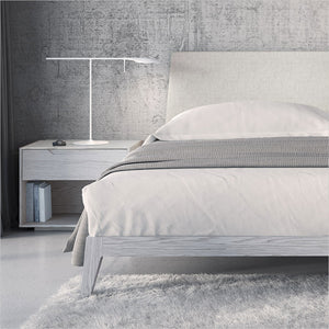 • We stock the Emma bed in King size in White Tarantino fabric with Light Grey on Oak frame.