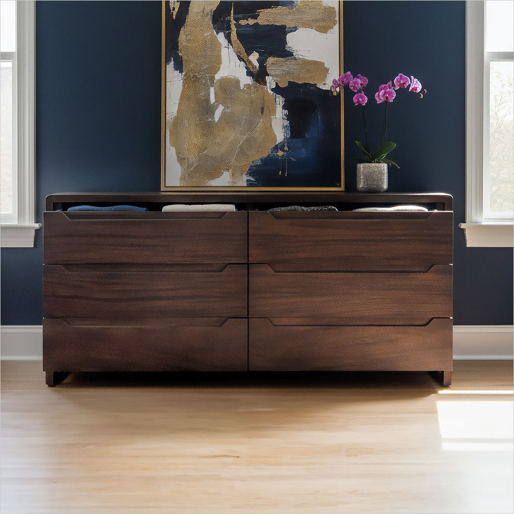 The Anna double dresser is stocked as shown in Dark (stained) Chamchuri wood, and in Natural Chamchurri wood.