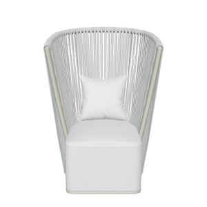 The Muse high chair makes quite a statement and is a great contemporary accent chair for your outdoor patio. It has a soft cushion in Silver Grey fabric combined with a Silver round rope weave on a Charcoal/Champagne powder-coated metal frame - built to ensure a long-lasting resistance to UV, chlorine and salt water. It is woven by weaving experts who take great pride in their unique craftsmanship.