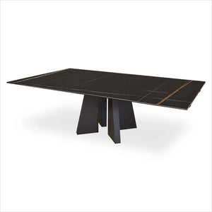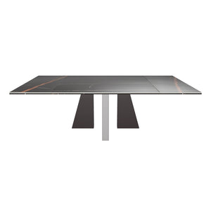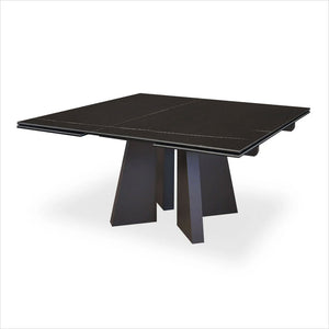 • The Luxor dining table is quite stunning with its grain matched, high-gloss Italian Porcelain Stone top and extraordinary size. The Luxor goes from 59" Square to 59" x 98.5", so seating 8 to seating 12. It has an Anthracite finished wood base and a beautiful self enclosed extension mechanism. Made in Italy.