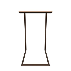 • The cantilever design of the Mano makes it perfect as a pull up table to any seating arrangement. The accent table features a powder-coated metal frame with a table top covered in eco-leather with detail stitching.
