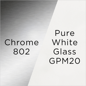 • We stock the Piccolo table with a Matte-painted White tempered glass top on chrome frame. Also available in stock in Turquoise on chrome frame, and in Grey glass on chrome frame and on satin nickel frame.