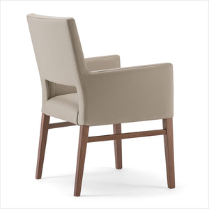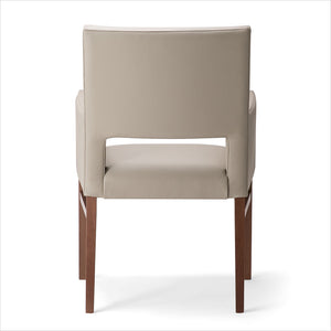 • Indulge in the luxurious feel of leather upholstery while adding a touch of classic elegance to your dining room. The Mialla dining armchair offers comfortable seating in a modern design with solid walnut legs.