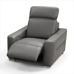 We stock the Sorento II recliner chair in super soft, Dark Grey top grain leather with contrast stitching. Legs in Metal Chrome.
