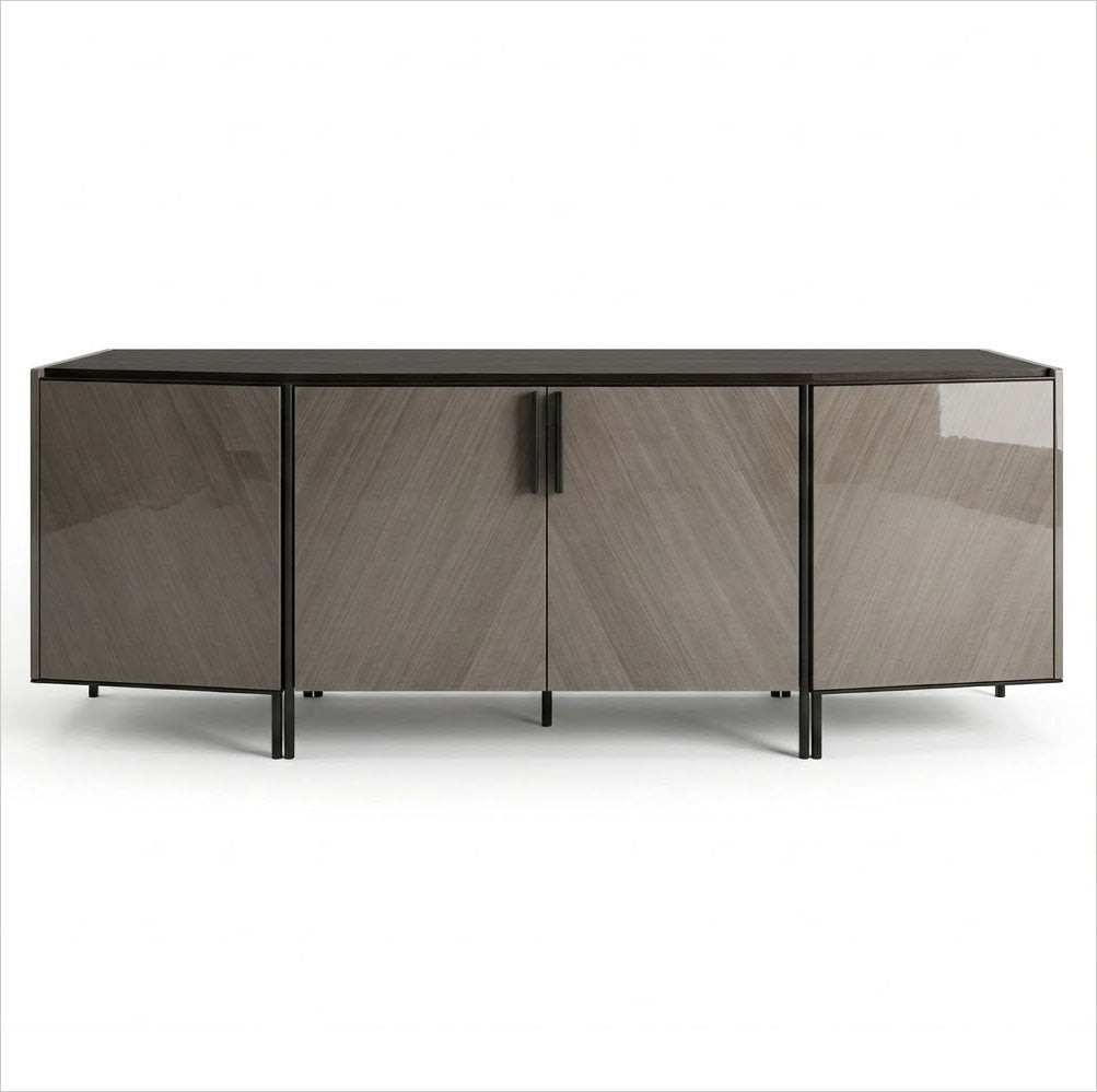 The Leones buffet is available in stock in Eucalyptus Velvet High Gloss with Dark Mahogany Matte finish.