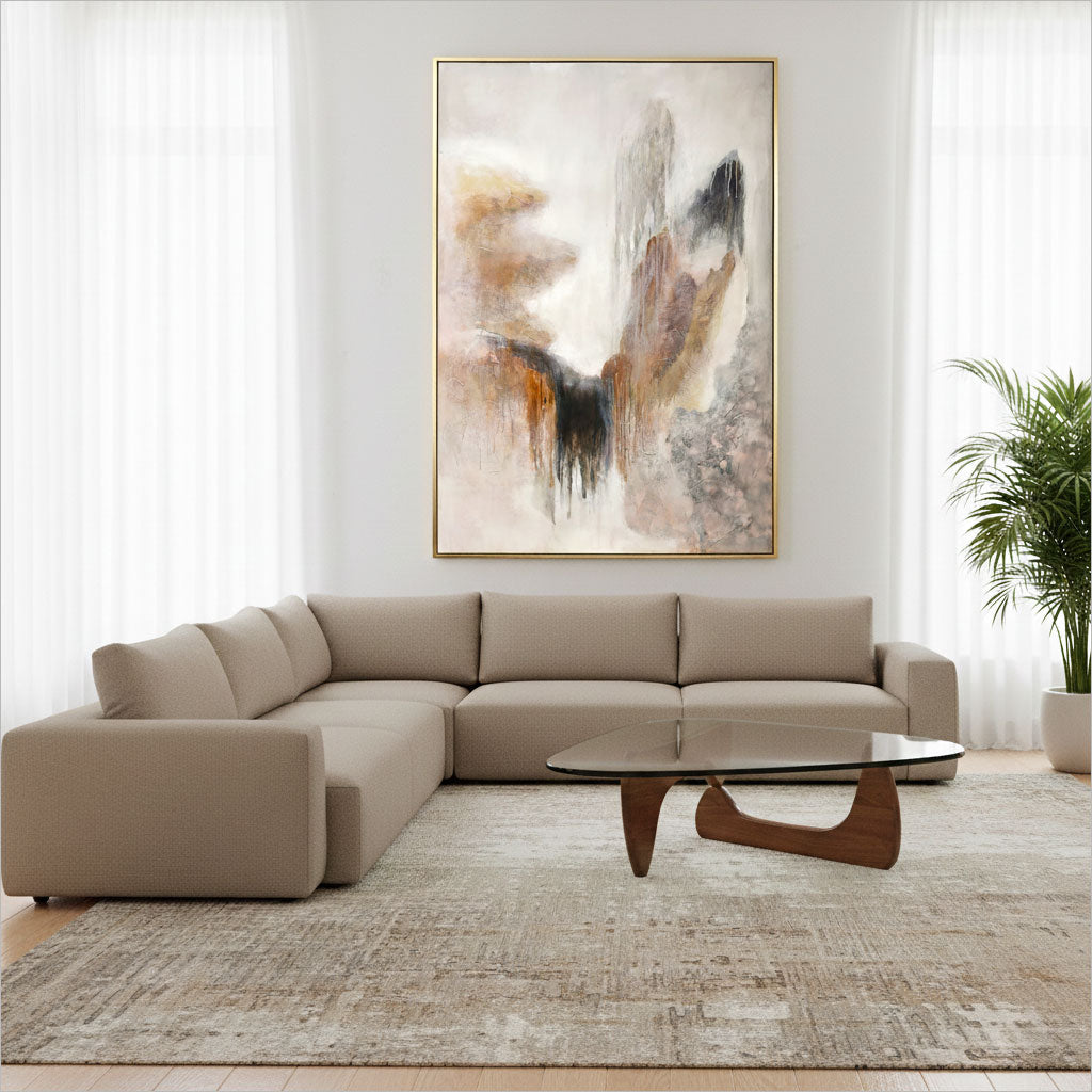 Blush is a hand-painted abstract canvas featuring soft blush tones layered with subtle variations in texture and movement. The palette feels warm and inviting while maintaining a modern, understated elegance.