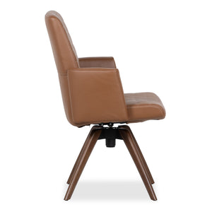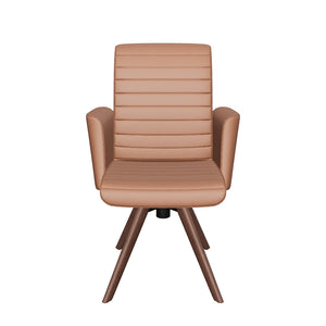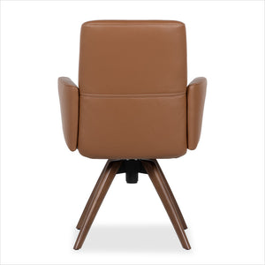 • Similar to the high-back Asker dining armchair in design, this armchair offers even more luxury features such as supple leather seating on a swivel base with beautiful walnut wood legs. The cold-cure molded foam and dynamic lumbar support of the high-back Copenhagen dining armchair provide unparalleled comfort, while sinuous spring suspension and a steel tubular frame ensures lasting durability. This armchair boasts both style and functionality as it comes with a reclining feature and comfort tilt. Experience the utmost luxury of reclining while dining!