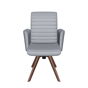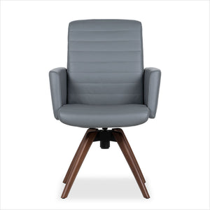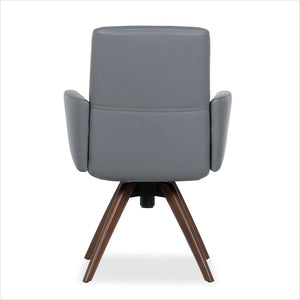Similar to the high-back Asker dining armchair in design, this armchair offers even more luxury features such as supple leather seating on a swivel base with beautiful walnut wood legs. The cold-cure molded foam and dynamic lumbar support of the high-back Copenhagen dining armchair provide unparalleled comfort, while sinuous spring suspension and a steel tubular frame ensures lasting durability. This armchair boasts both style and functionality as it comes with a reclining feature and comfort tilt. Experience the utmost luxury of reclining while dining!