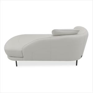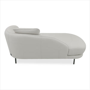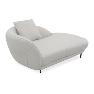 We stock the Deco chaise in Frost leather in both a left-arm configuration.