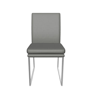 Mix comfort with elegant, clean-cut design and quality, and you'll have the Emie dining chair. This modern dining chair features 100% Top grain leather with superb stitching along the edges as well as a brushed, stainless steel base.