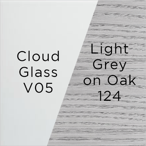 • We stock the Emma nightstand in Light Grey on Oak with a light grey/ white Cloud glass top.