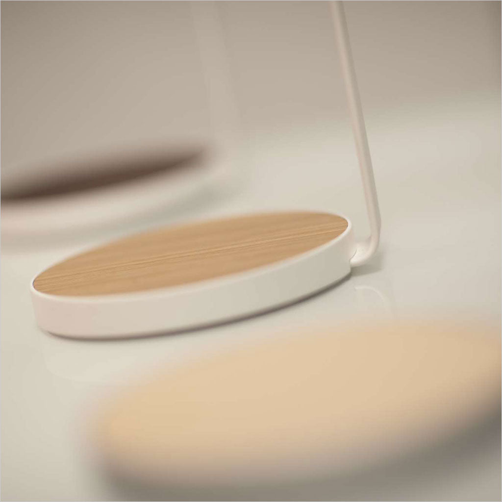 Gravy Desk Lamp is a unique desk lamp that brings style and warmth to your home or office. Edge lit technology in a circular LED head provides a soft, evenly distributed glow of warm light. The solid wood bar and base are offered in three different natural woods: light Maple, White Oak, and rich Walnut. A delicate aluminum stand supports the wood bar and LED head. The wood bar and LED head slide and rotate to achieve perfect light placement.