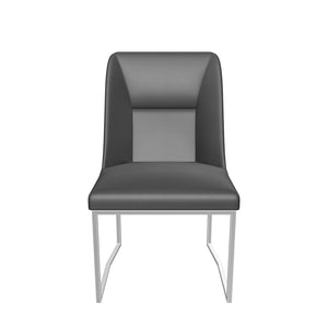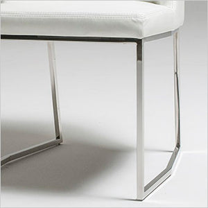 The Icon dining chair features stainless steel and top grain leather in a timeless design. The webbing in the seat adds extra comfort.