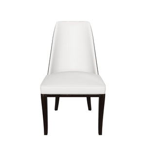 The Iris dining chair is Italian-made and features a beautiful curved wood back paired with the best top grain leather. This comfortable dining chair is stocked in Ice leather with wood back and legs in Burned Wenge finish. The Iris dining chair is a terrific quality.
