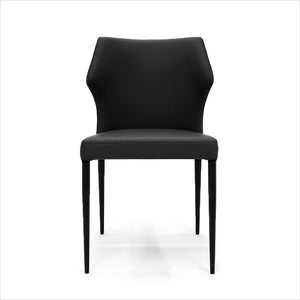 A modern wing-back design. The Jack is a comfortable, light-weight dining chair clad in top grain leather - matched with Black metal legs.