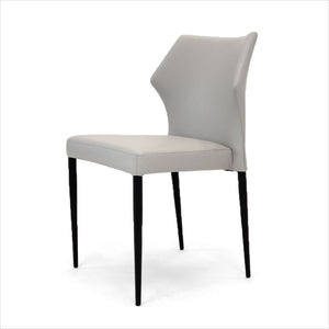 A modern wing-back design. The Jack is a comfortable, light-weight dining chair clad in top grain leather - matched with Black metal legs.