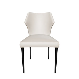 A modern wing-back design. The Jack is a comfortable, light-weight dining chair clad in top grain leather - matched with Black metal legs.