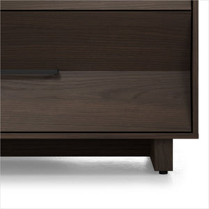 The Kava double dresser provides ample storage with soft-close drawers, textured black interiors, and a removable velvet-lined tray. The sturdy-compliant interlock system enhances safety while maintaining a sleek, modern look.