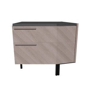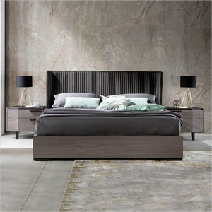 The Leones nightstand is available in stock in Eucalyptus Velvet High Gloss with Dark Mahogany Matte finish. Available in left and right nightstand.