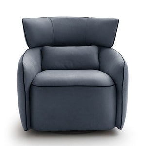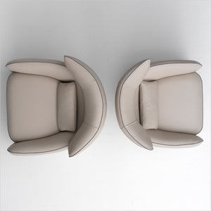 The 360-degree swivel base provides a seamless, fluid motion, perfect for conversation. Subtle stitching details and gentle curves create a look that is both contemporary and classic, embodying the artistry of Italian craftsmanship.