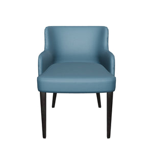 • We stock the Lucy dining armchair in Pacific Blue leather with Matte Black Oak legs.