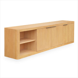 • We stock the Luna 3-door media cabinet in Natural White Oak. Also available in stock in Charcoal finish.