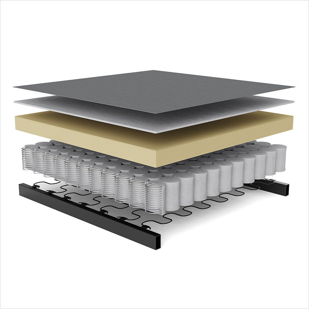 The Noah mattress features a durable metal frame with a unique combination of no-zag and pocket springs topped with high resilient foam. A mattress construction that offers a soft and inviting top as part of a unique sitting and sleeping comfort.