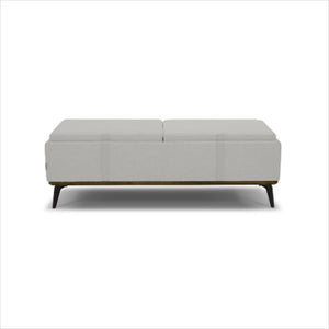 • The Oslo ottoman features ALL top grain leather as well as beautiful wood detailing in Dark Walnut finish - matched with Black stiletto legs. The Oslo ottoman has ample storage underneath its flip-top - which also allows the ottoman to serve as a coffee table/tray when reversing the top.