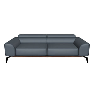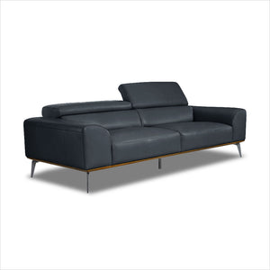 The clean, modern style of the Oslo sofa features ALL top grain leather with decorative, contrast stitching on arms as well as beautiful wood detailing in Dark Walnut finish - matched with Black stiletto legs.