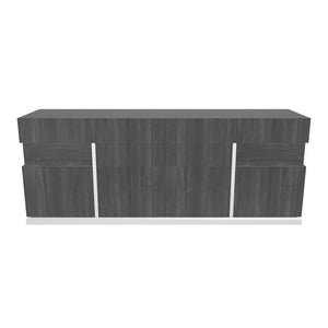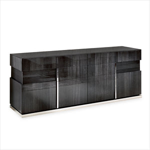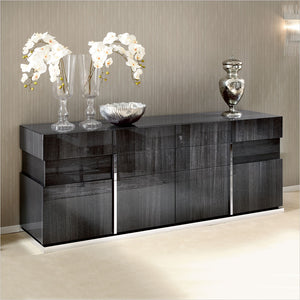 • The Riviera is a contemporary series of furniture in beautiful, grey Koto high gloss finish with metal accents - featured here is the dining room buffet.