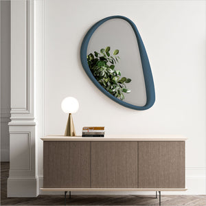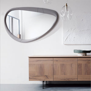 We stock the Tribeca mirror in Slate Blue Lacquer, as well as in Brown Camel, Soft White and Light Grey Leather.
